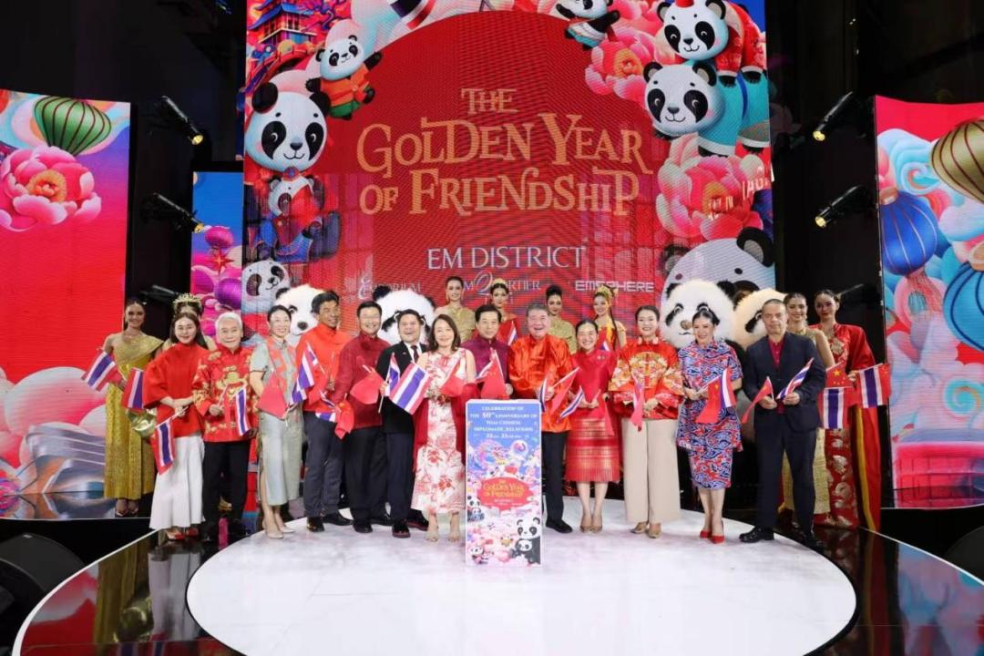 2025年1月27日,庆祝中泰建交50周年暨蛇年新春大熊猫主题展开幕活动在曼谷知名EM商圈举办。中国驻泰国大使韩志强、泰国副总理兼国防部长普坦,以及The Mall集团董事长素帕拉出席并致辞,泰社会发展与人类安全部长瓦拉乌、文化部长素达婉、内政部副部长提拉叻、曼谷市市长查察、国家旅游局局长塔帕妮,以及泰各界代表共同出席。