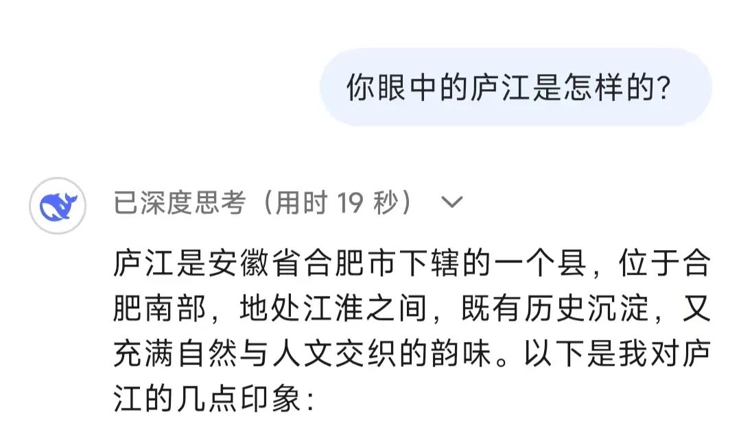 原标题:《爆火的DeepSeek,为庐江写下了这首诗》