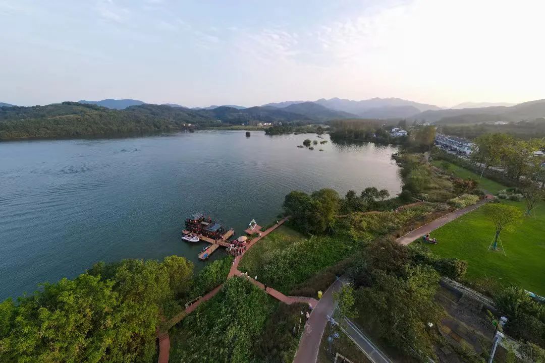 注:诗的首联将庐江比作一幅徐徐展开的绝美画图,四周环绕的重重翠影,展现出其生机勃勃、绿意盎然的整体风貌。颔联聚焦当地著名景观,冶父山高耸入云,山上古寺悠悠,禅意流淌;黄陂湖水波荡漾,引得成群的鹭鸥盘旋往返,动静相宜。颈联描绘乡村景致,果林繁茂,遮掩着宁静的山村,田野里稻穗沉甸甸地低垂,一片皑皑,尽显丰收景象。尾联则提到庐江的温泉,腾腾热气仿若仙境,能为旅人洗去尘埃、消除疲乏,润泽着周边的苍苔,增添一抹温润的气息,全诗从多角度展现庐江独特魅力。