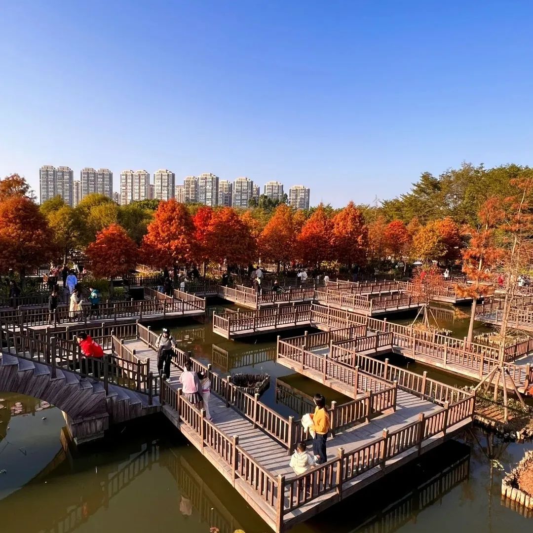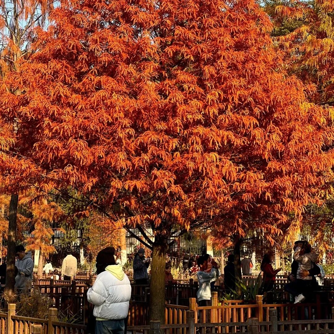 落羽杉五缘湾一年一度的落羽杉亦正红