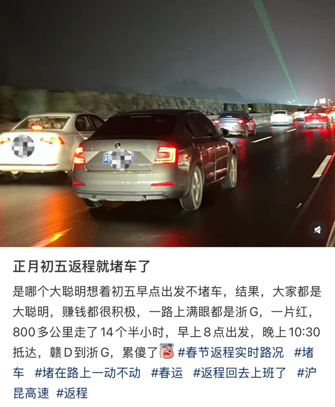 有人回杭,900公里开了18个小时,从白天到黑夜,再从黑夜到白天,总算在今天凌晨6点抵达。有人800多公里开了14个半小时……