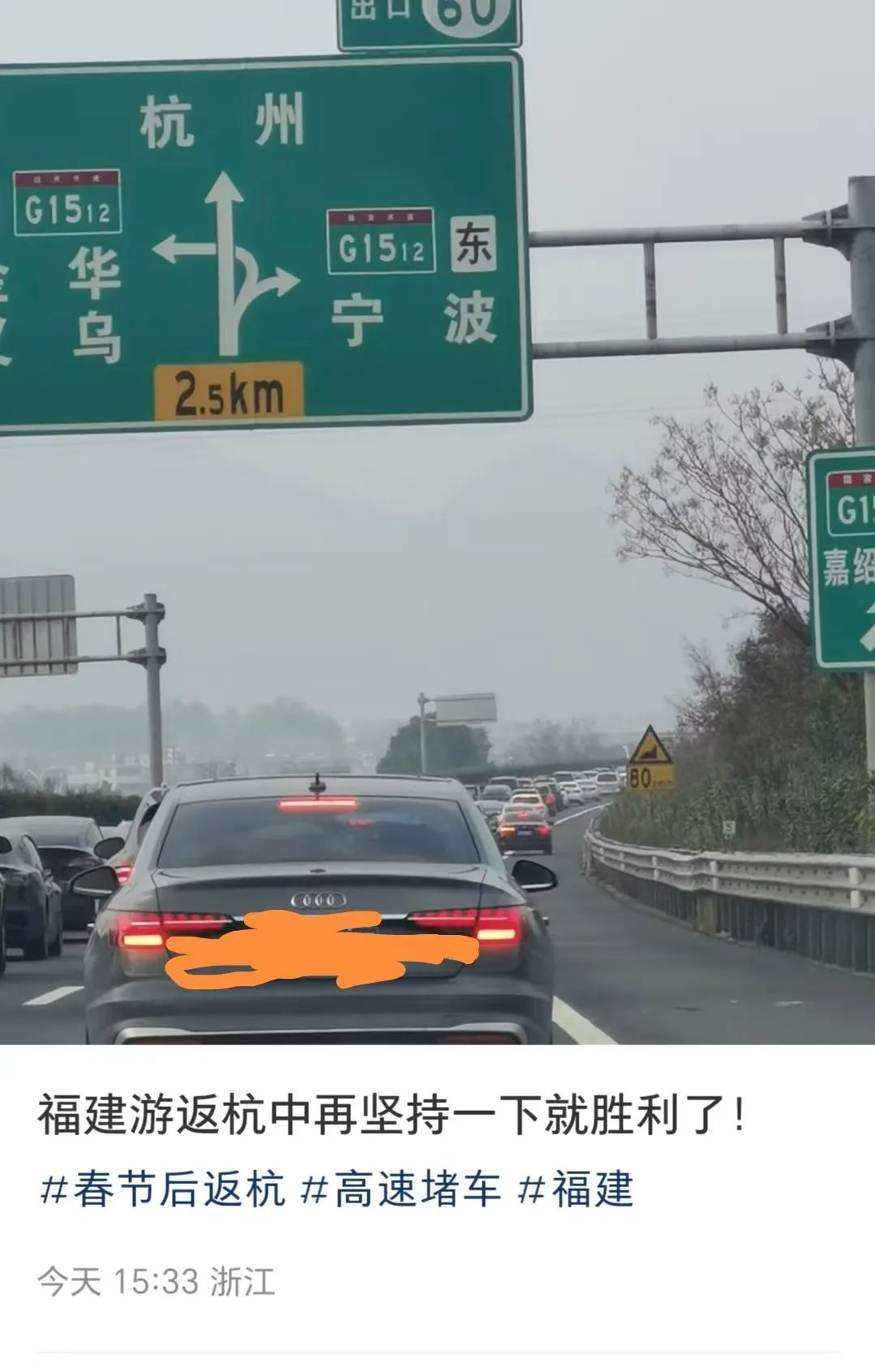 今天大年初六,春运返程高峰已经开启。因车流量较大,当前,杭州周边多个高速入口关闭,不少高速因拥堵出现缓行,甚至限流,返程大军里有没有你?