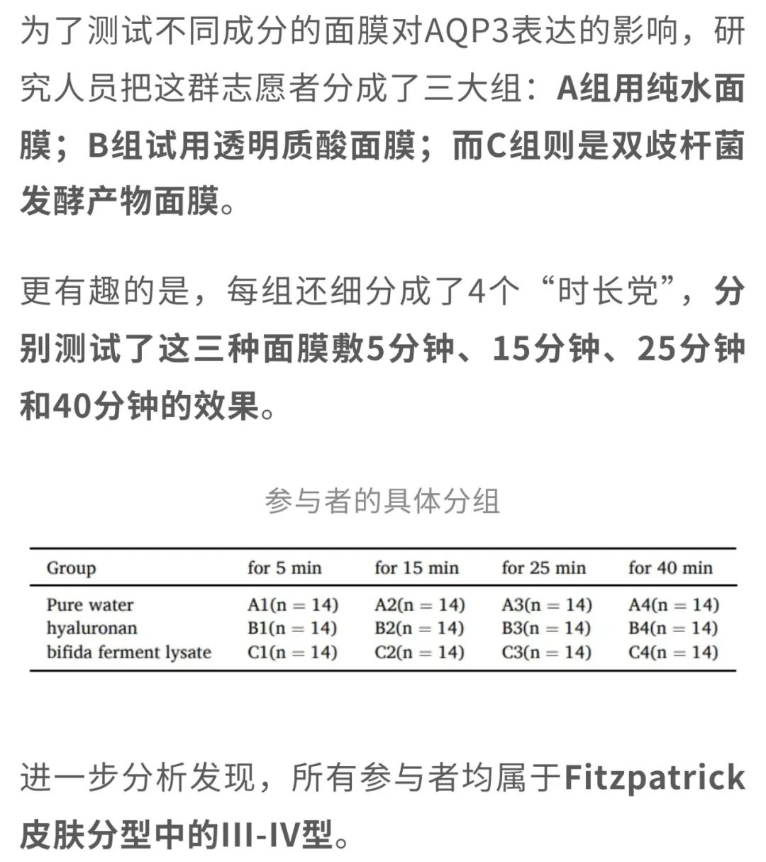 C组用的是双歧杆菌发酵产物面膜,虽然需要敷25分钟才能显现最佳效果,但它的补水能力可不容小觑。
