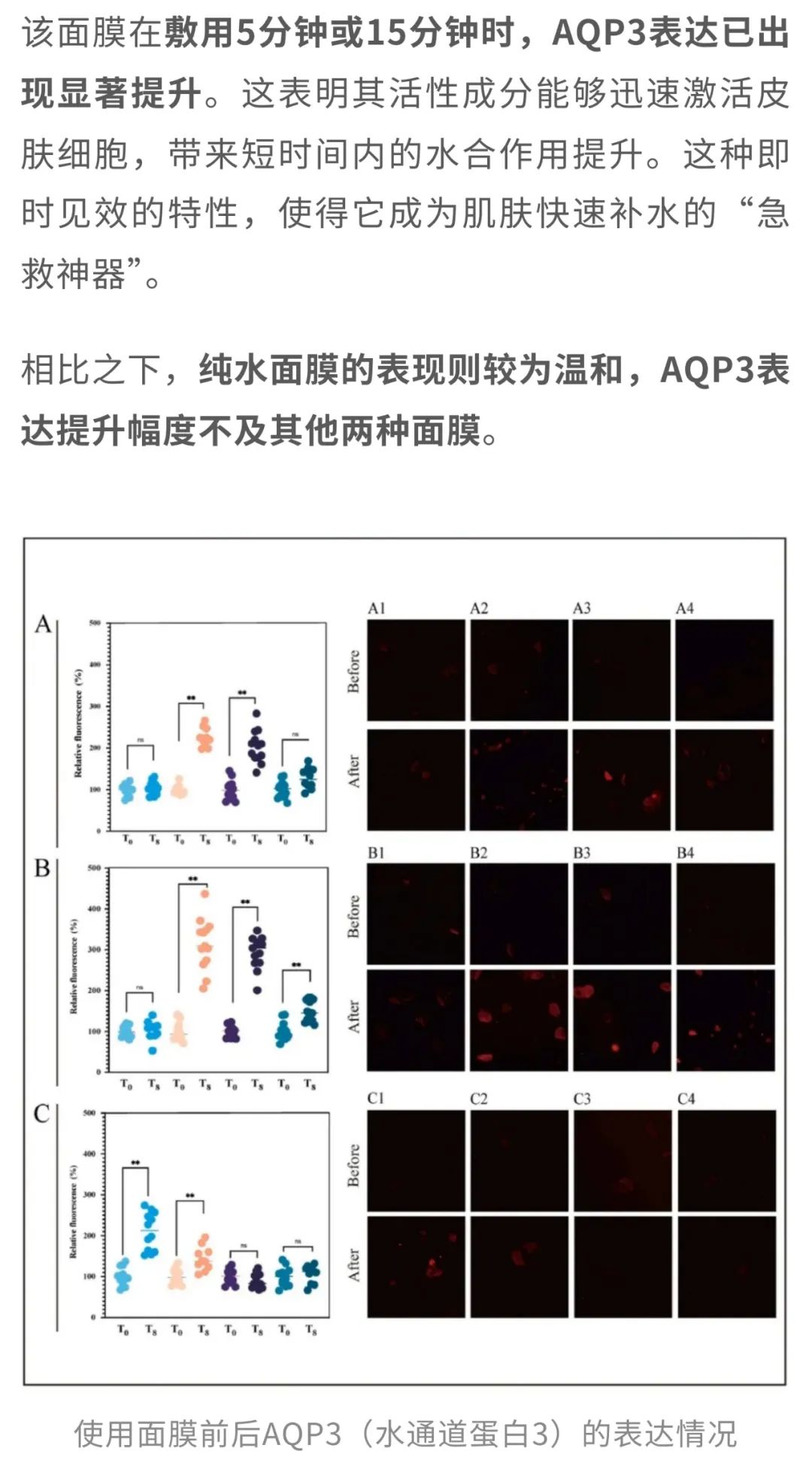 在看面膜对皮肤的具体影响之前,我们得先说说水通道蛋白3(AQP3),这是一种特殊的“水泵”,能够帮助皮肤细胞传输水分,是维持皮肤水润的关键。