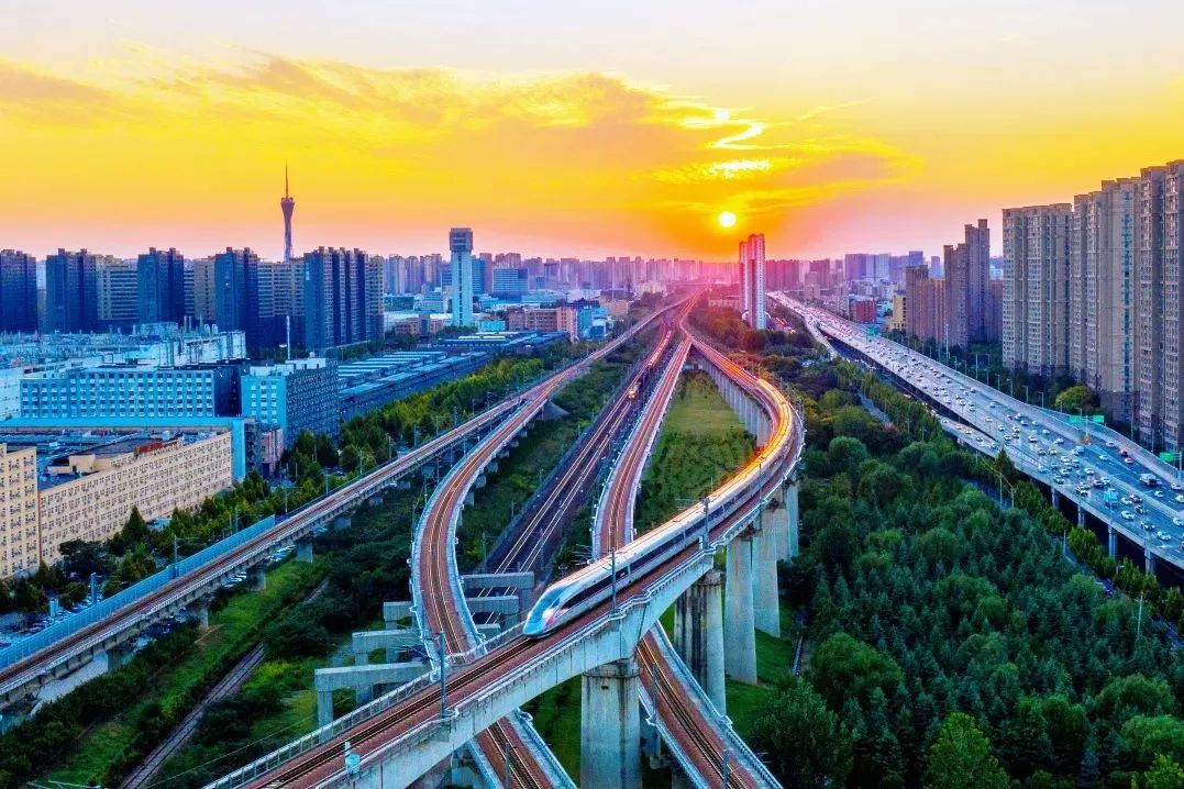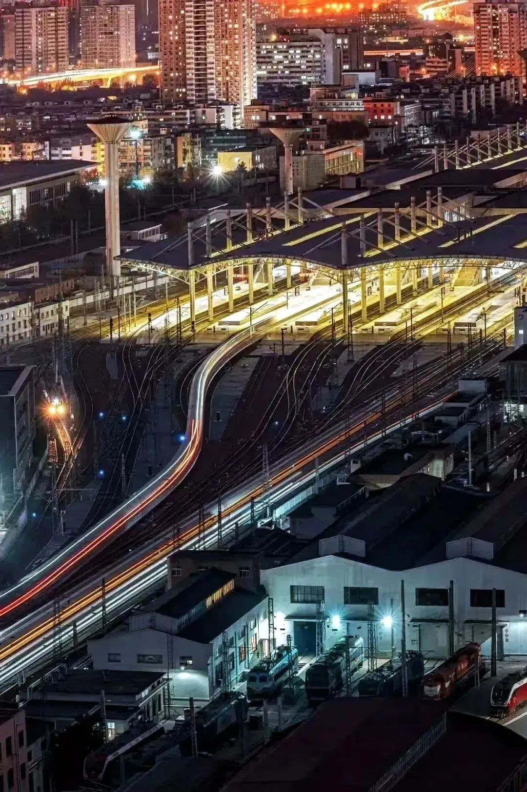 夜晚,高铁驶出灯火通明的郑州站,与万家灯火融为一体。卫心雨 摄