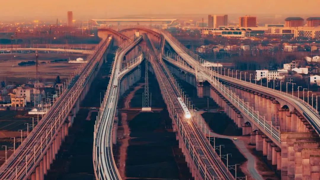 京广高铁、郑万高铁、郑阜高铁及相关联络线上四辆列车同框。施群 摄