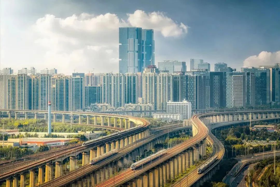 动车组列车运行在成都铁路枢纽线路上。薛志鹏 摄