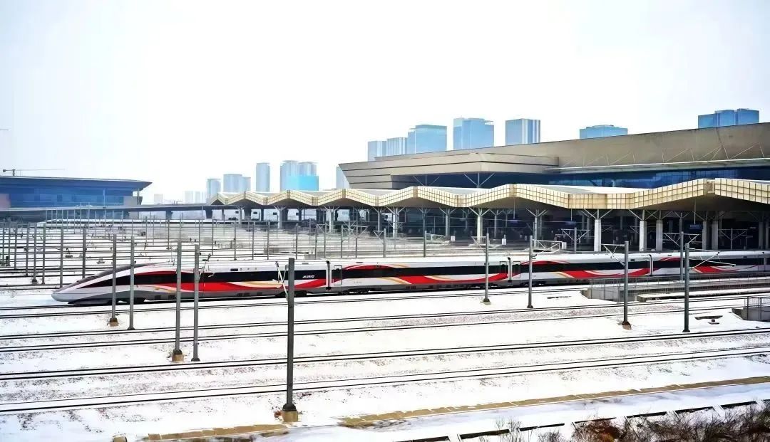 春运首日,汉十高铁与郑渝高铁两列动车组列车在襄阳东站并行出站。胡理澳 摄
