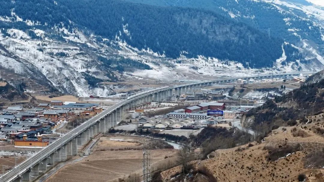 动车组列车运行在四川省阿坝州松潘县崇山峻岭间。金志辉 摄