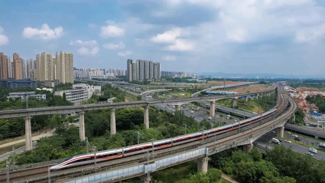 复兴号智能动车组列车运行在成都铁路枢纽线路上。费思童 摄