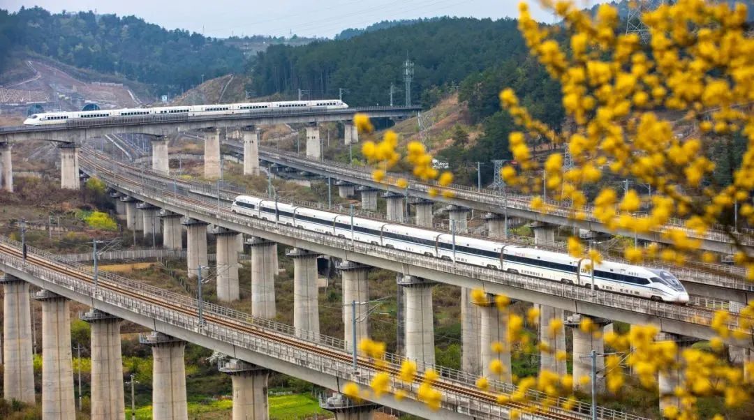 动车组列车运行在贵阳铁路枢纽线路上。宋兆强 摄