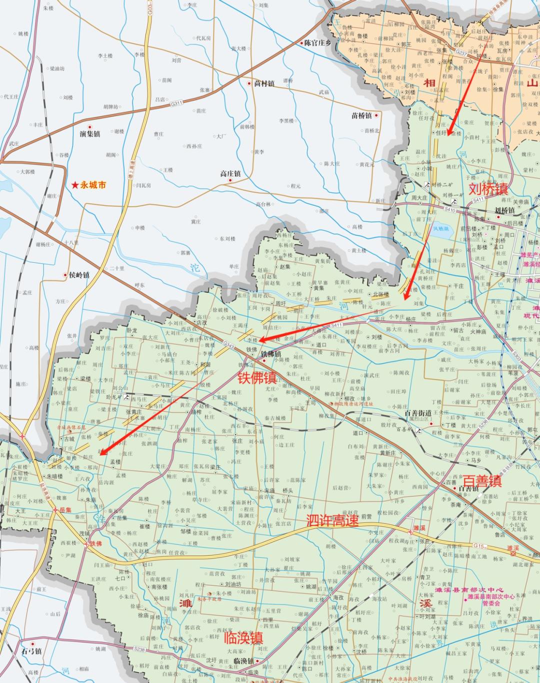 且距离刘桥镇、百善镇、临涣镇中心更近