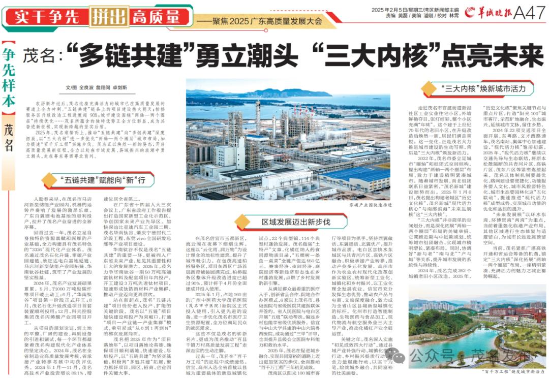 2025年2月5日《羊城晚报》A47版农历新年过后,茂名这座充满活力的城市已在高质量发展的赛道上全力冲刺。