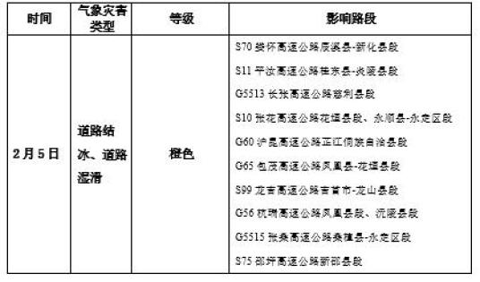 防范2月5日至2月6日(初八至初九)湘西北高海拔地区道路结冰对交通出行的不利影响。