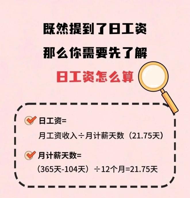 通知指出,月计薪天数:(365天-104天)÷12月=21.75天,和新规实施前一样。