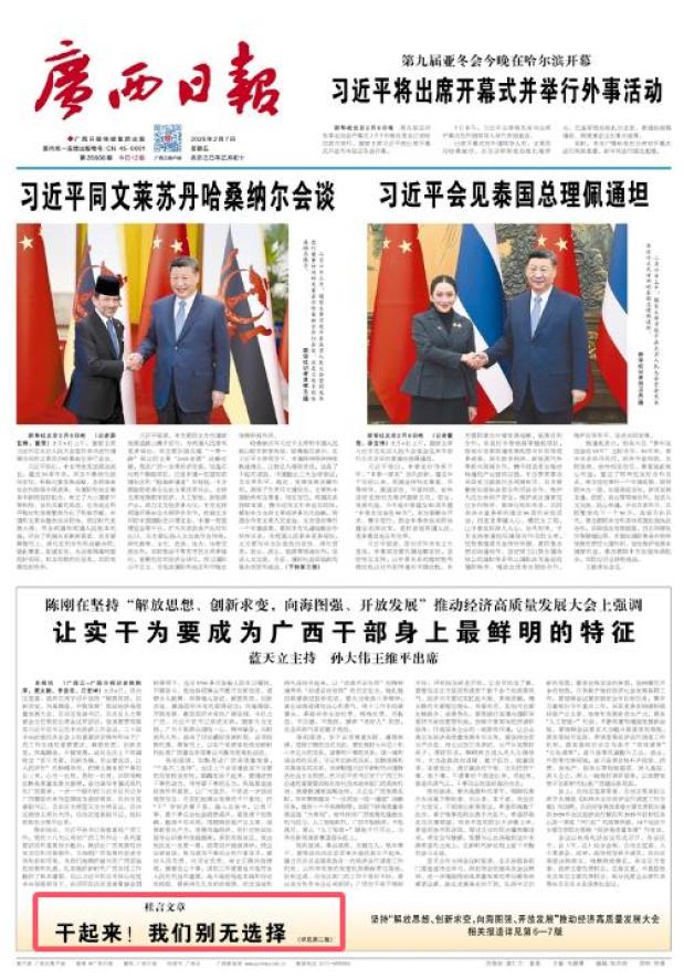 2月7日《广西日报》头版刊发文章