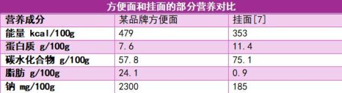 方便面和我们平时吃的挂面相比,营养成分差不多,只是在含量上会有差异。