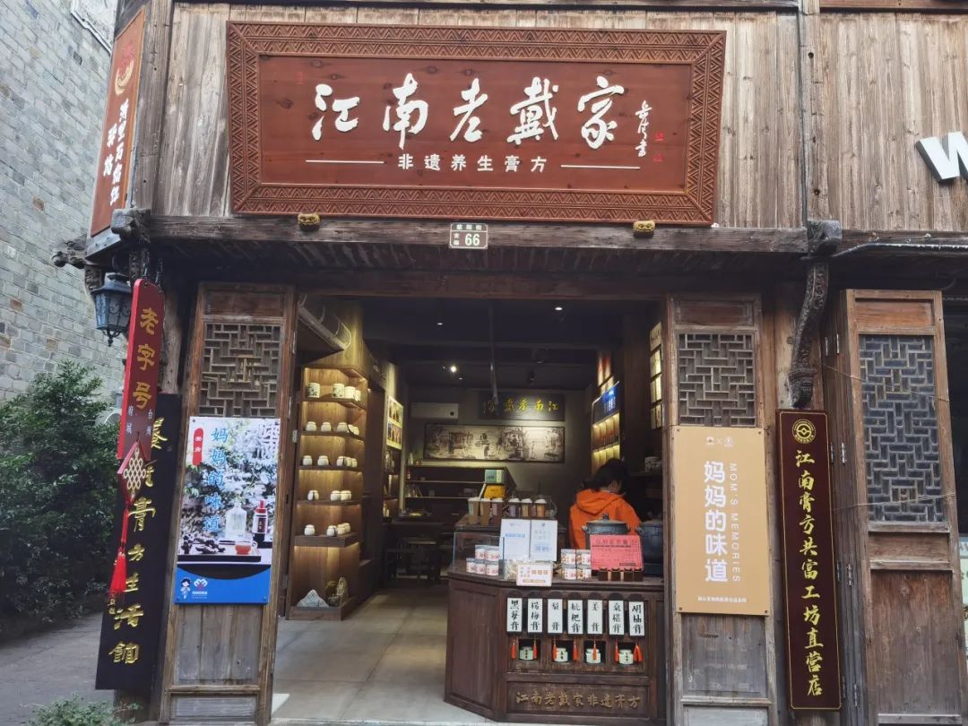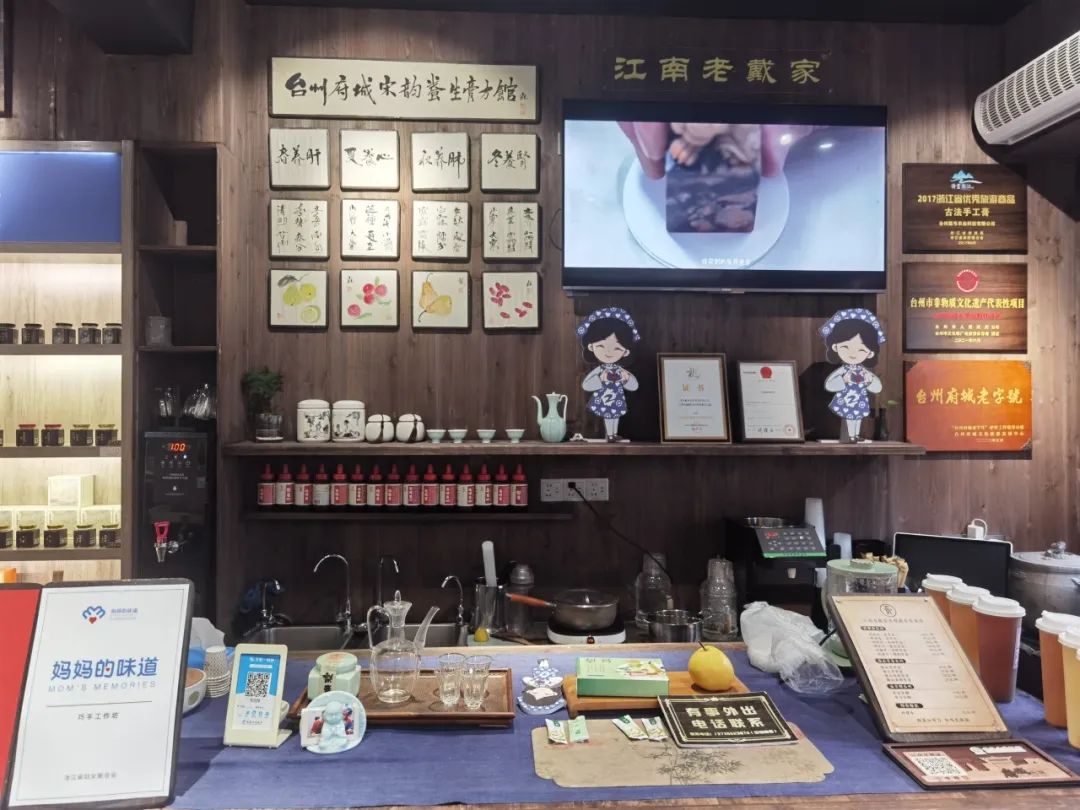 在临海市紫阳街66号,坐落着临海市“妈妈的味道”甄选店——“江南老戴家”非遗养生膏方门店,店内弥漫着淡淡的水果清香,吸引来往的游客驻足。