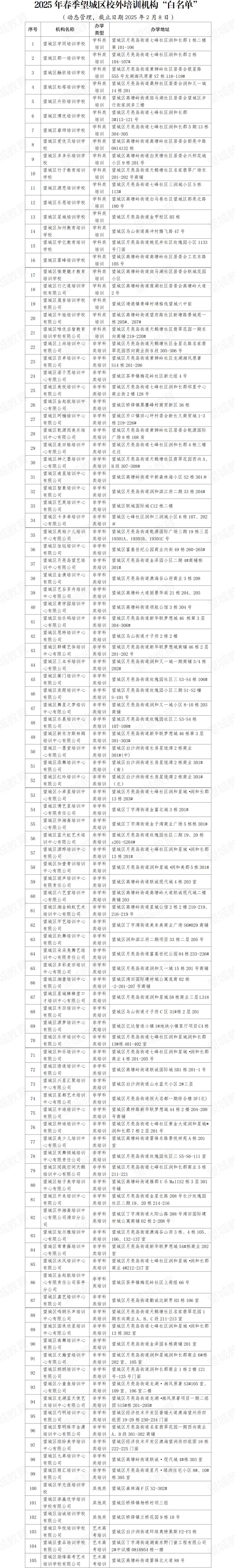 2025年春季望城区校外培训机构“白名单”“黑名单”公布