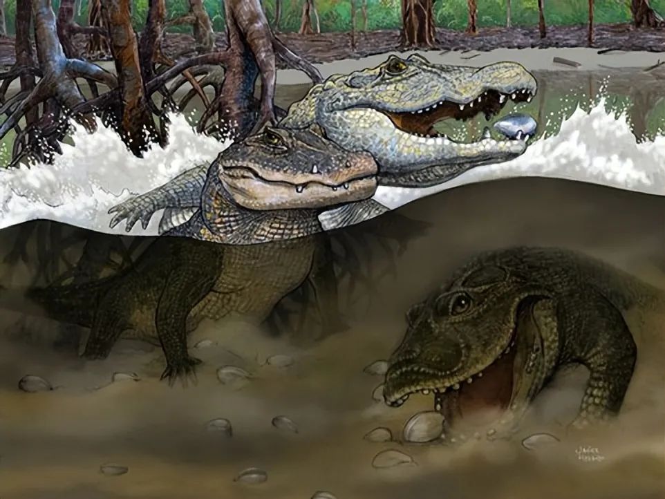 潮湿闷热的环境让爬行动物受益,鳄鱼这个古老的类群从来不会放过任何机遇,它们开始在佩巴斯湖蓬勃发展,迅速多样化和增大体型。