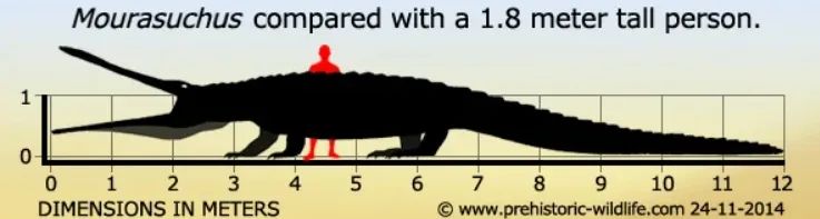 莫拉氏鳄(Mourasuchus),这是佩巴斯湖另外一类10米以上的鳄鱼,它们有趣的地方是下颌和头骨结构相对较弱(这意味着它们咬合力不大),拥有类似鸭子的嘴部结构,以及喉部有一个很大的凹槽袋,就像鹈鹕一样。古生物学家推测,这些鳄鱼很可能是滤食性的,就像一些须鲸一样。