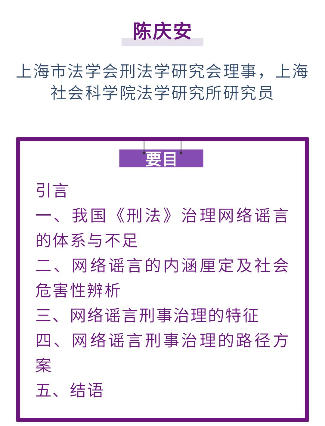原标题:《陈庆安|网络谣言刑事治理的理念、路径与方案》