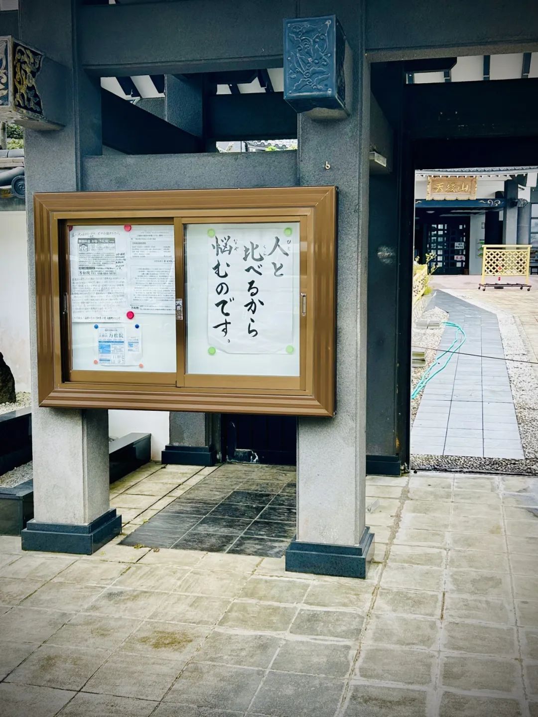 在那霸市的第一天,我就走了超过三万步,几乎相当于过去半个月的步数总和。我穿着妈妈从集贸市场二十块钱买的东北大花阔腿裤,坐浮在空中穿过城市的轨道电车去很多地方,路过的寺庙万松院门口的公告栏里写着“与人比较,徒生烦恼”。