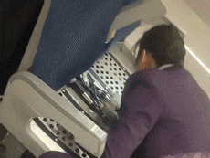 按照旅客描述的位置,胡月、赵欣旋转座椅,查看椅子缝隙,并通过听播放的音乐循声排查。