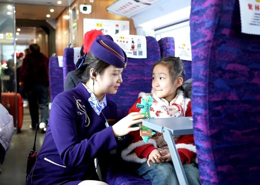 针对带小孩的务工人员,车上备有“哄娃”玩具和小礼物,一路上为务工人员提供暖心周到的服务。