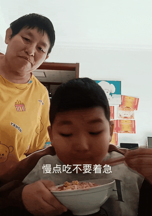 坐在一旁的奶奶,满眼宠溺,不停地往孩子碗里夹菜。明明她自己还来不及吃上一口热饭。