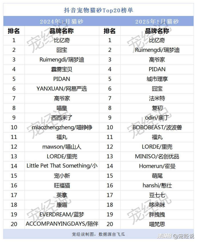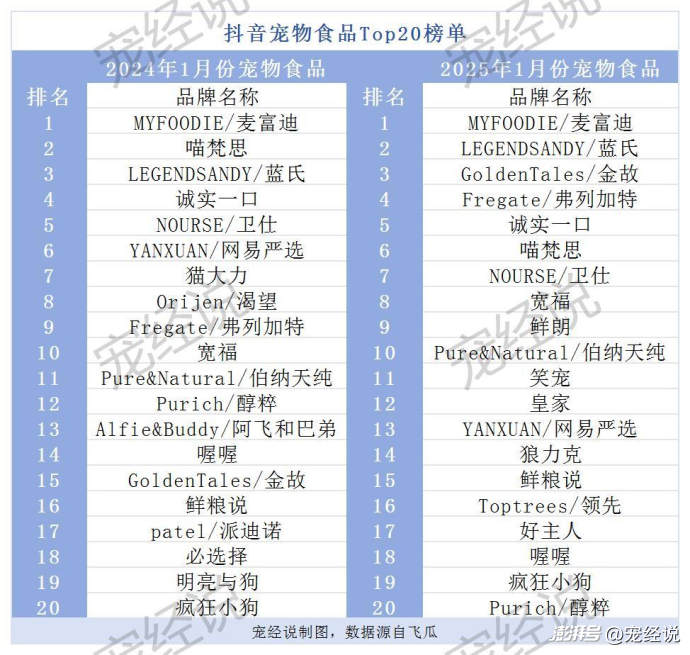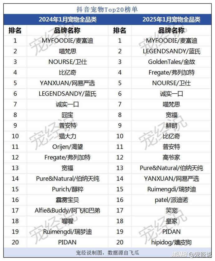 2025年伊始,有哪些品牌登上了抖音TOP20榜单,排名又有着怎样的变化,背后反映出哪些宠业新趋势?