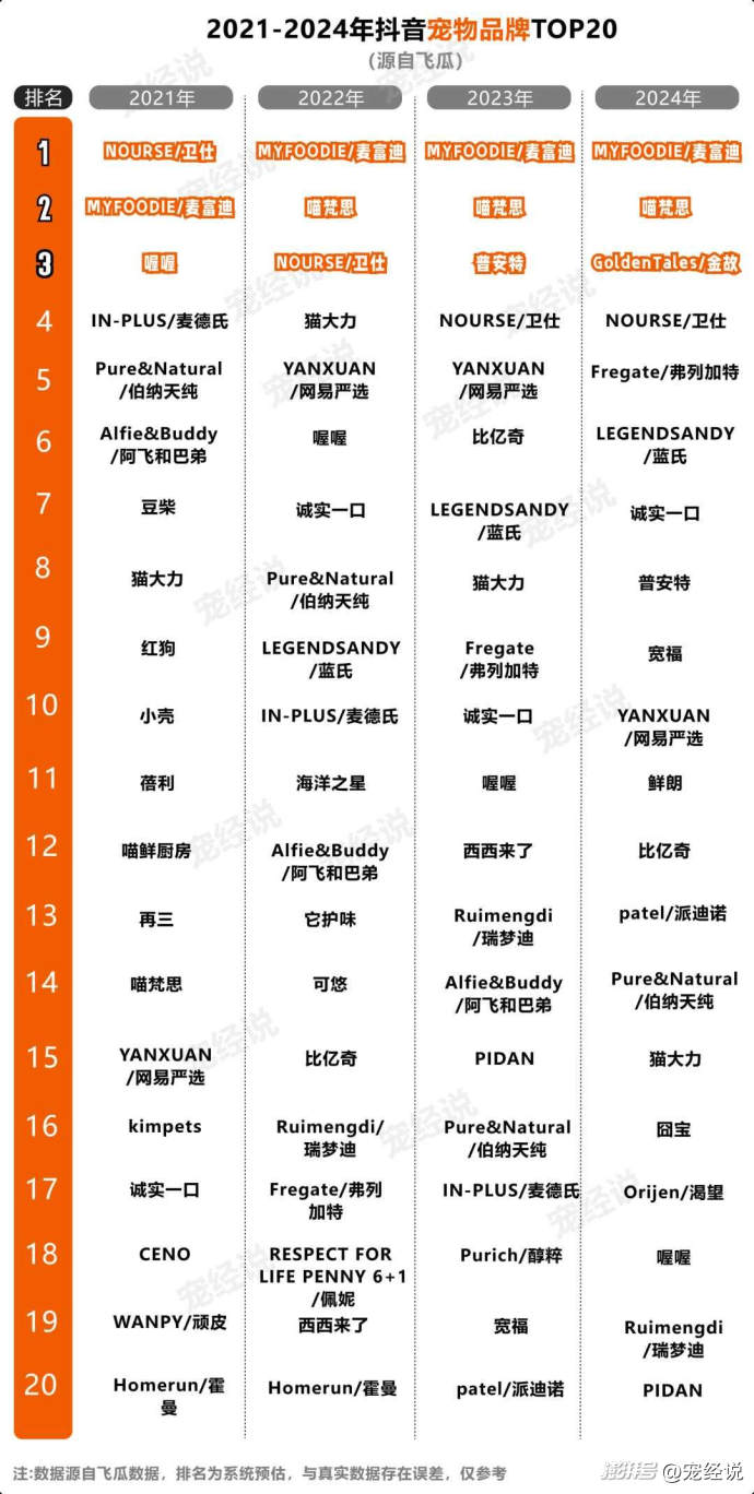 排名巨变!2021-2024抖音宠物品牌榜单出炉