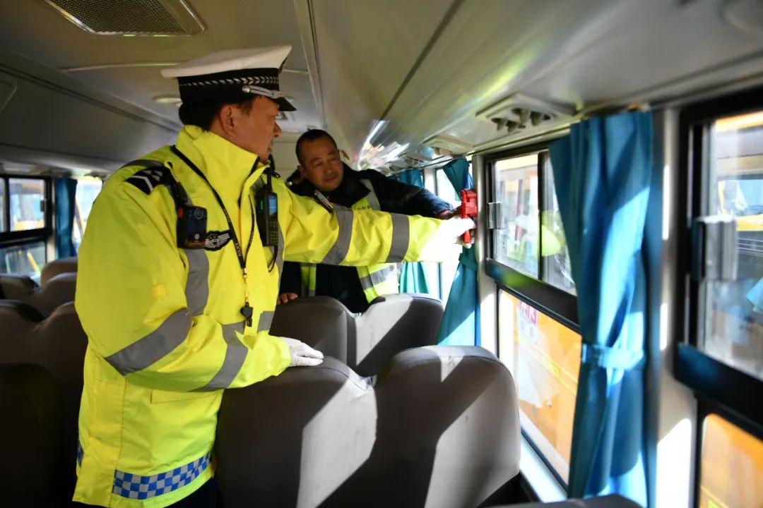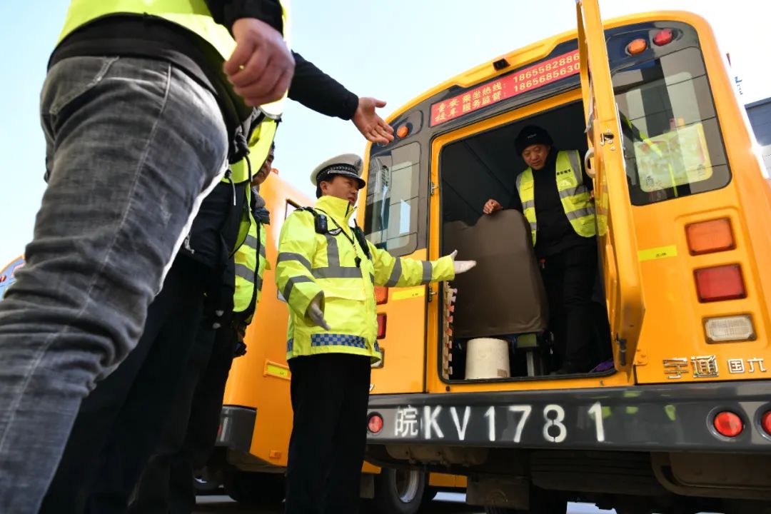 开学前夕,为全力守护学生上下学交通安全,阜阳交警集中开展校车安全大检查,确保每一辆校车都“健康”上路,筑牢学生交通安全防线。
