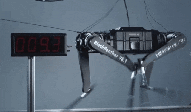 “黑豹”整体重量为38公斤,站立高度0.63米。在测试中,它可以稳定地跑出超过10米/秒的速度,这个速度打破了四足机器人的世界纪录,同时也与100米短跑运动员的最快奔跑速度接近。