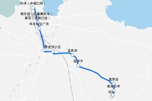 桥头、桥头税务、威海三中、孟家庄、后亭子、温泉汤、黄金顶小区、江家寨、丰禾商业广场、蒿泊、韩乐坊、长峰,共12站。