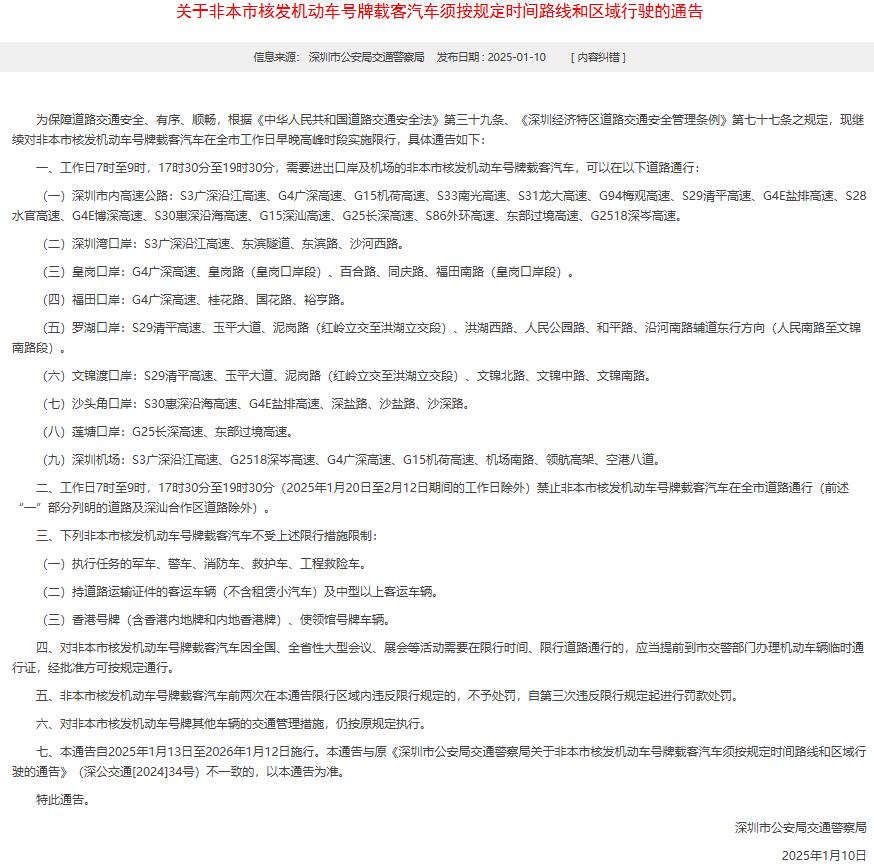 2025年深圳相关限行规定