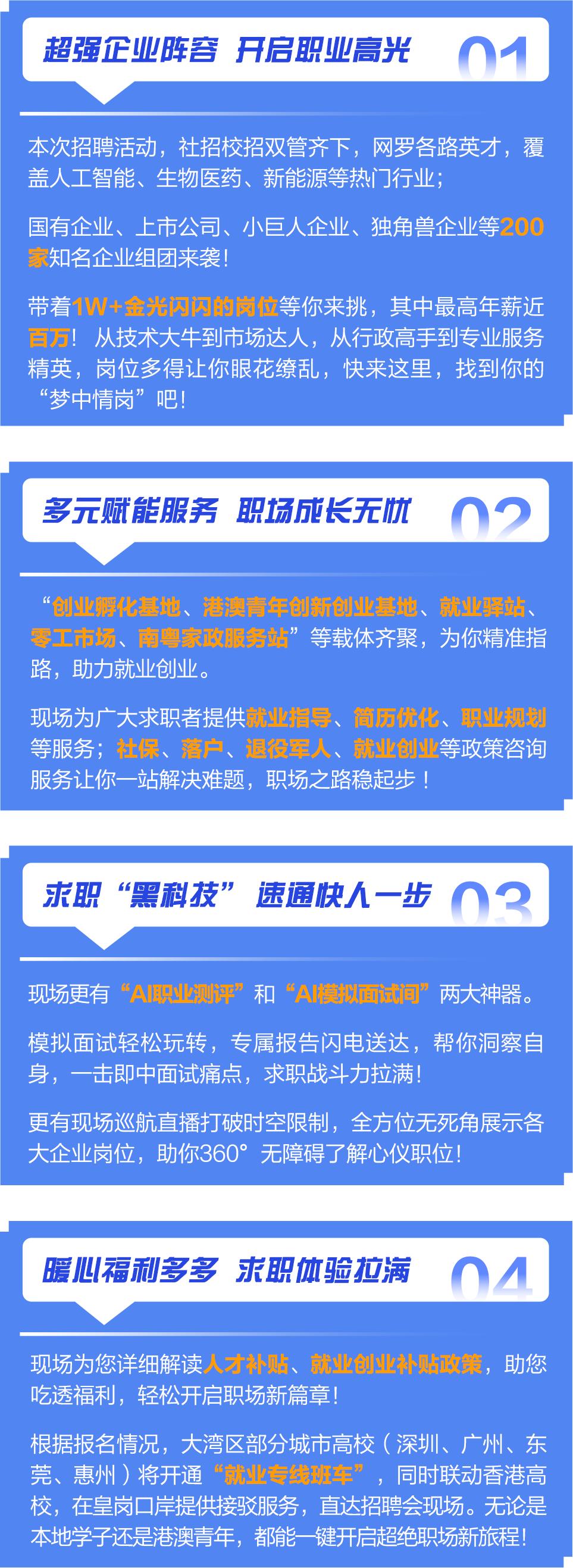 广东正全力广聚天下英才,携手港澳加快建设高水平人才高地,夯实现代化产业体系的人才基座、人才底座。今年,广东将以“粤聚英才、粤见未来”为主题,实施“百万英才汇南粤行动计划”,拿出具有竞争力的薪酬和岗位,吸纳100万高校毕业生来粤就业创业。南山作为“广东第一区”,将以此次招聘会为契机,为天下英才提供广阔舞台,助力粤港澳大湾区高质量发展!