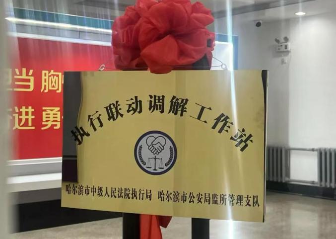 黑龙江法院坚持和发展新时代“枫桥经验”,建立“4﹢1”五步联动机制,各辖区法院纷纷建立执行联动调解工作站,图为哈尔滨中院建立的执行联动调解工作站