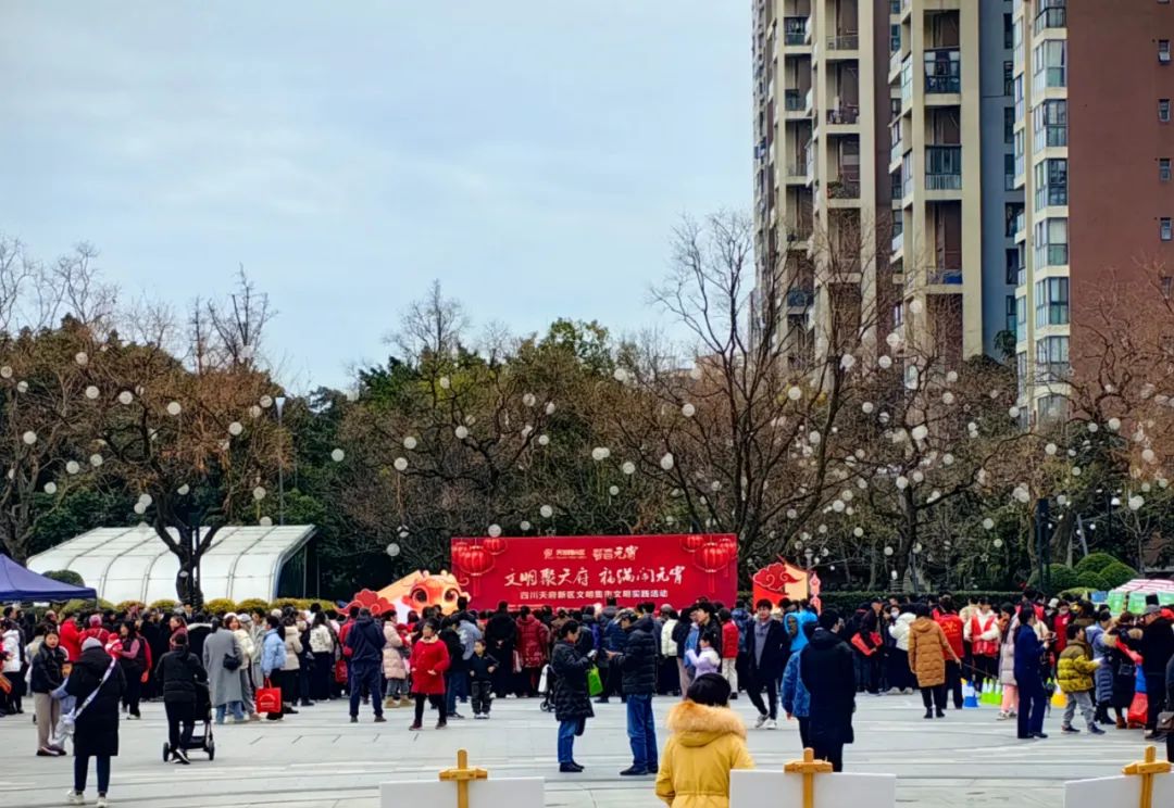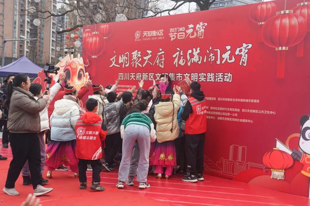 2月12日,一场以“文明聚天府·福满闹元宵”为主题的文明集市活动在四川天府新区三利广场热闹开场。此次活动由四川天府新区党工委党群工作部、四川天府新区精神文明建设办公室、四川天府新区新时代文明实践中心联合主办,将传统民俗与现代文明深度融合,为新区居民带来了一场元宵盛宴。