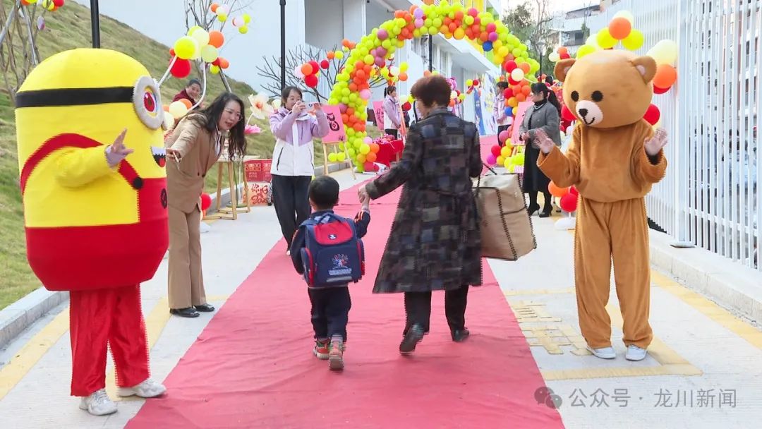 晨光初绽,童声盈园。开学第一天,龙川县教育幼儿园以一场满满的仪式感,为153名萌娃铺上通往新学期“童话般的红地毯”。憨态可掬的吉祥物张开双臂,与孩子们上演"萌偶抱抱"的温情互动;七彩气球编织的"成长隧道"蜿蜒如虹,指引着孩子们解锁新程;饱含美好寓意的蔬果展台前,稚嫩的小手一一将"平安""聪慧""成长"等美好祝愿一一收获。