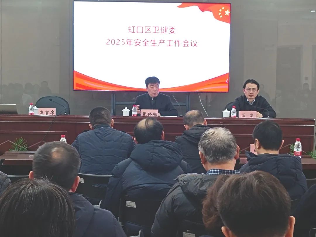 2月12日上午,区卫生健康委召开2025年区卫生健康系统安全生产工作会议,学习贯彻习近平总书记关于安全生产工作的重要论述,传达国家和市卫生健康委安全生产工作会议精神,部署今年虹口区卫健系统安全生产工作。区卫生健康委主任张伟胜出席会议并讲话,区卫生健康委副主任汤显主持会议。