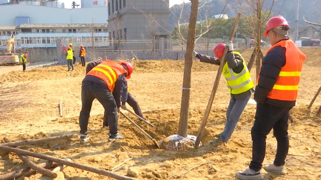 正加紧进行景观绿化施工
