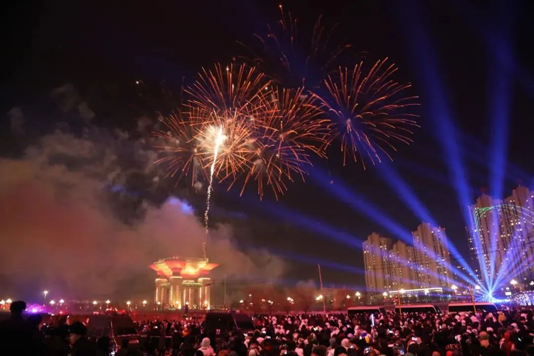 图们市举办“江畔万家欢 焰舞盛世春”烟花表演。