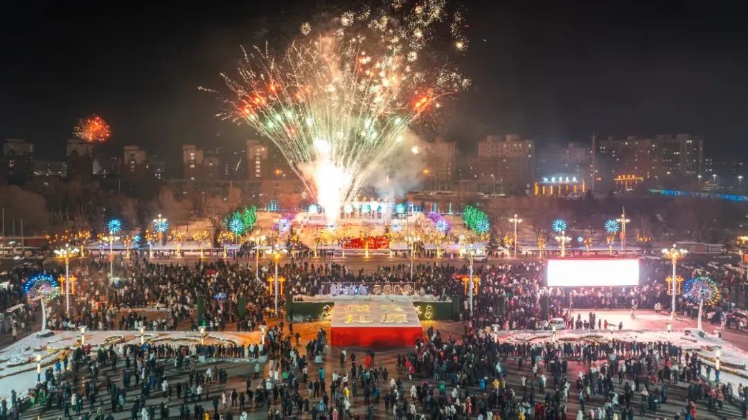 珲春市举行2025年元宵节群众文化活动,无人机表演震撼上演,壮观瑰丽的焰火升腾夜空……铺展出锦绣画卷。