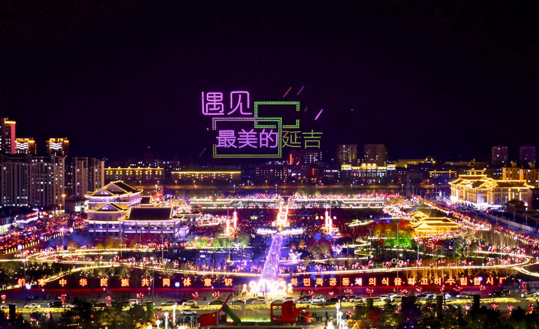 2025年元宵节无人机编队表演及焰火晚会在延吉市精彩上演。