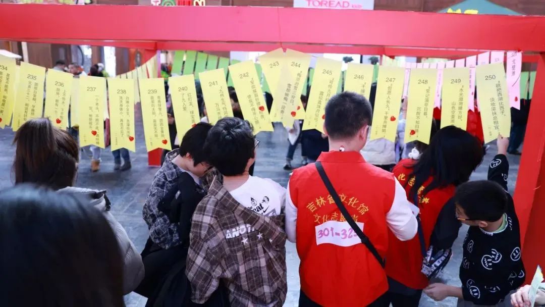 “吉风吉韵送吉祥”——2025年吉林省文化馆元宵灯谜喜乐会在中东新天地购物公园隆重启幕,五彩纸打印的500条灯谜随风轻摆,吸引着众多市民驻足。