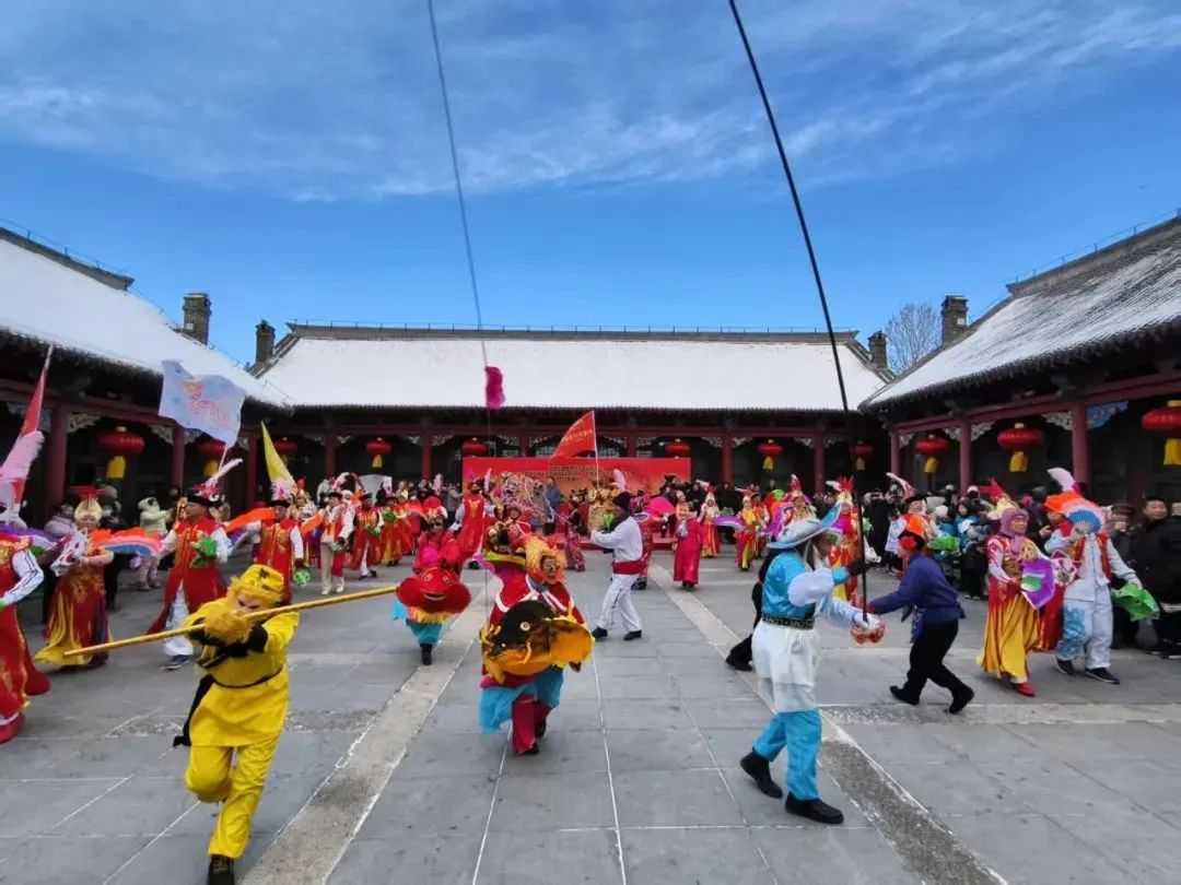 2月12日上午,长春市文庙博物馆杏坛广场唢呐高亢,锣鼓齐鸣,“幸福的日子扭起来”长春市2025元宵节秧歌展主会场活动在这里精彩上演。