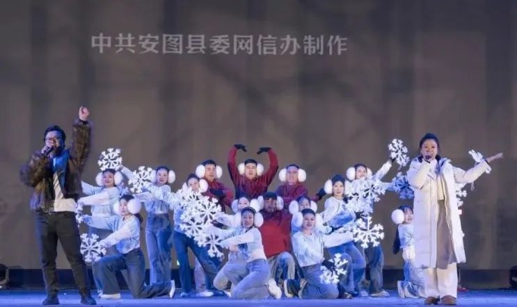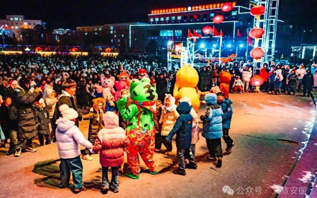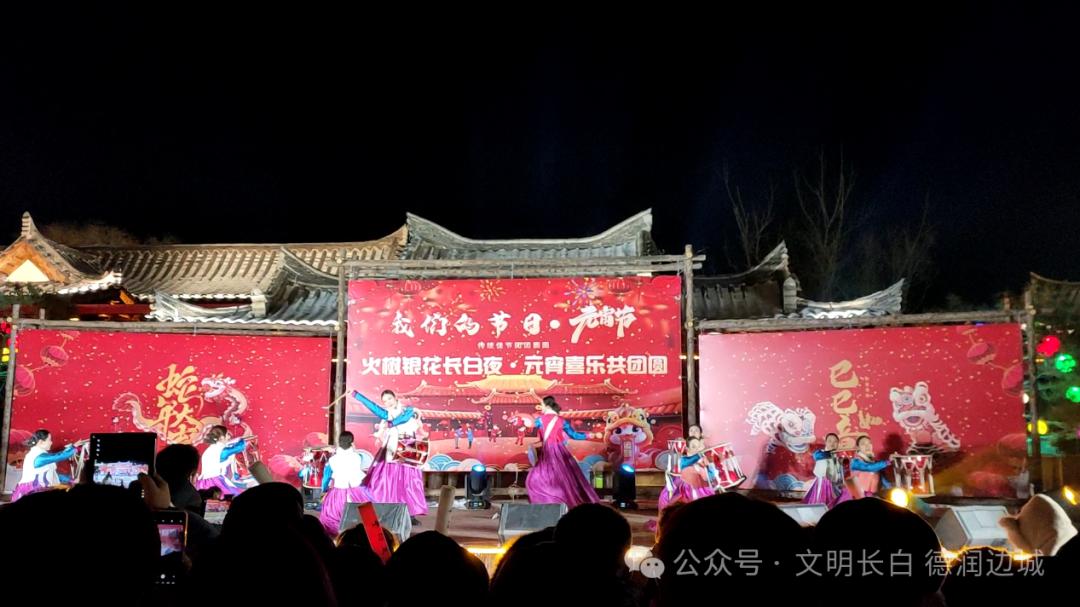 安图县举办2025年安图农商行杯元宵节烟花灯谜文艺晚会,悠扬的歌声回荡在夜空中。