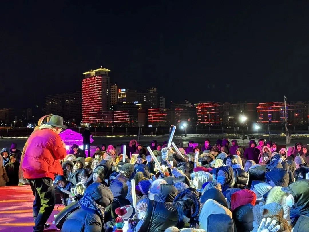 在延吉冰雪欢乐谷内,2025年延吉市“冰雪DJ秀,嗨FUN元宵节”电音歌舞派对吸引了诸多市民游客参与体验。