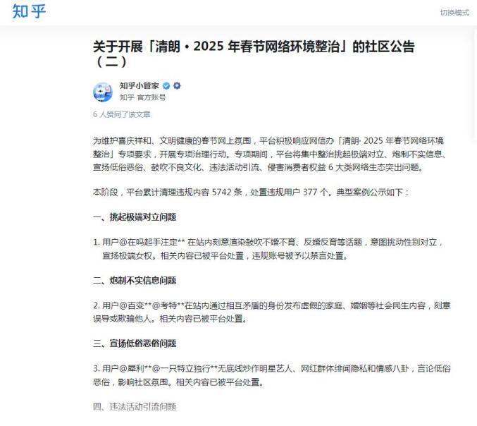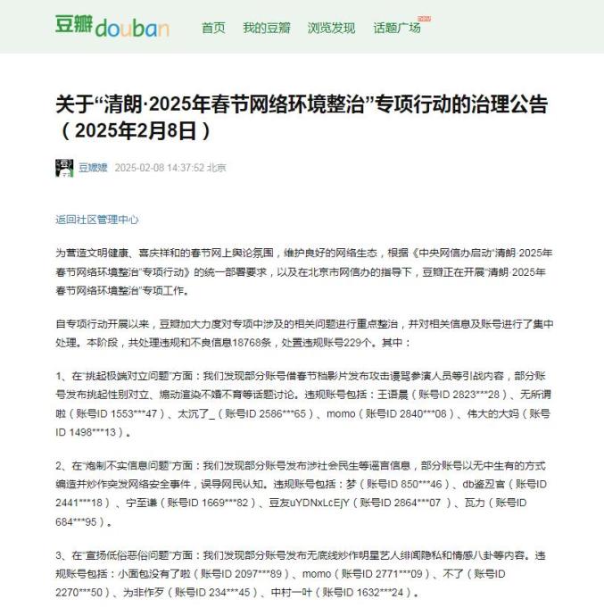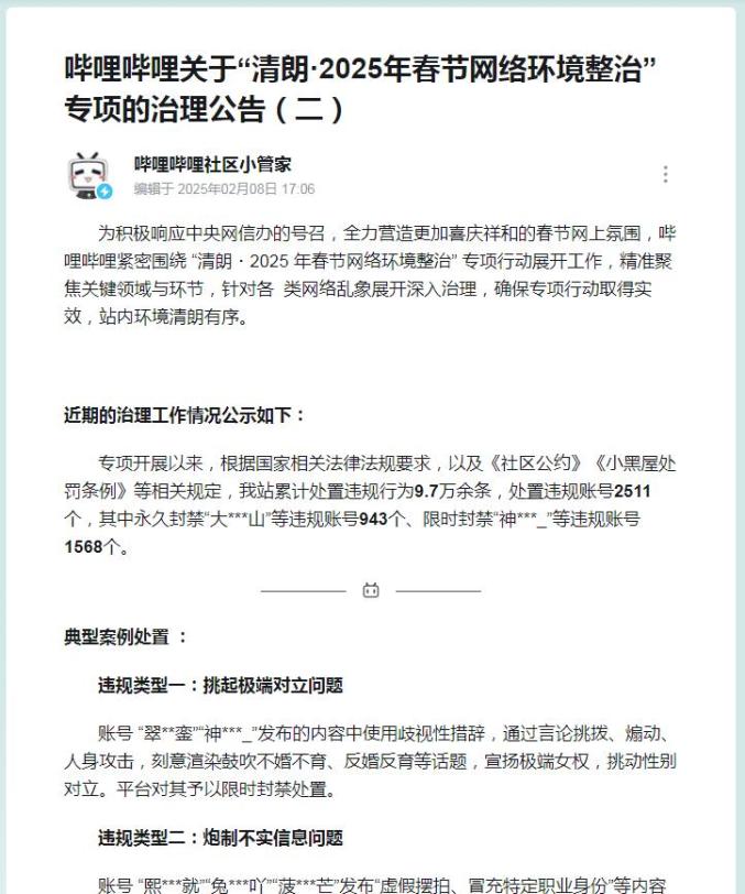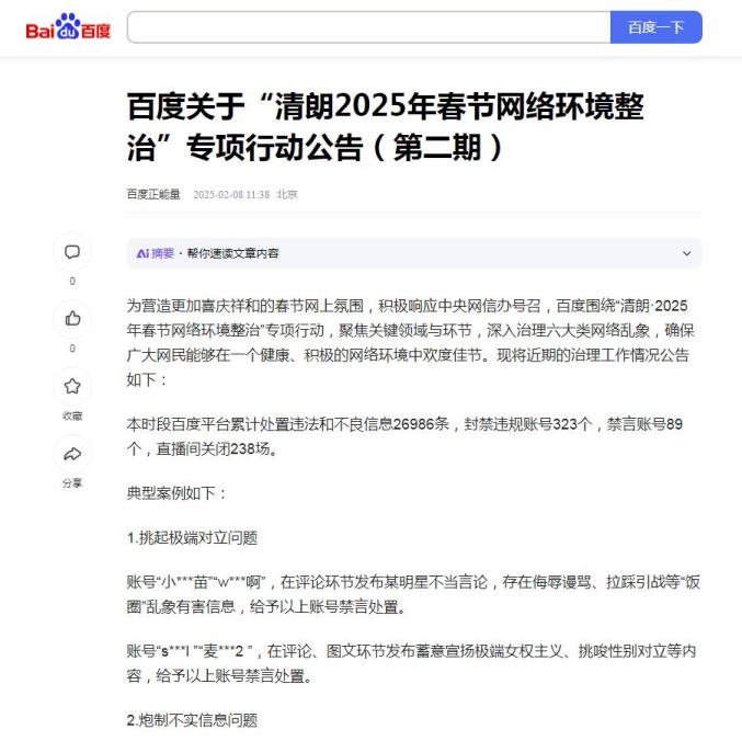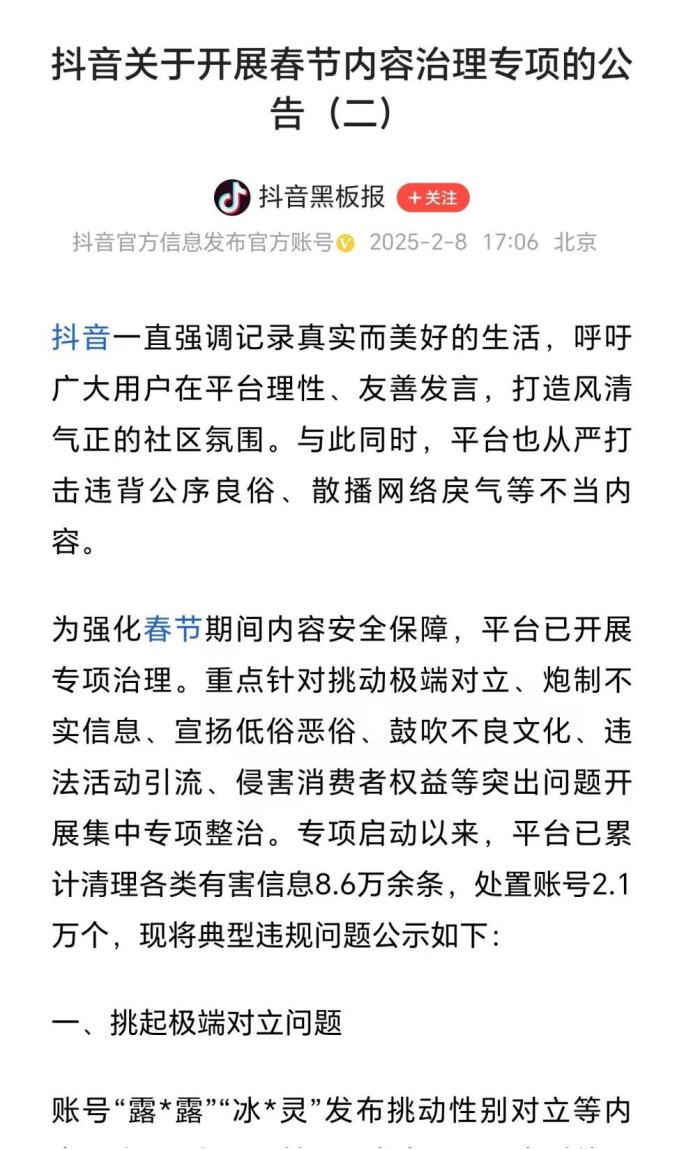 【净网·2025】多平台发布“清朗·2025年春节网络环境整治”专项行动治理成效和典型案例